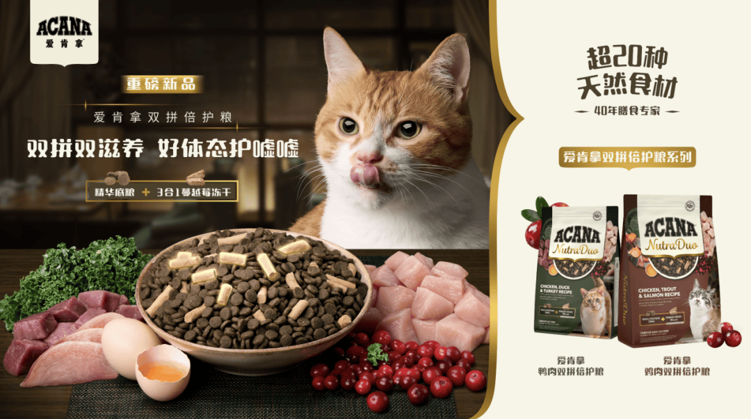 冠军宠物食物旗下高端宠粮品牌爱肯拿进行了一次冲破性发布:将品牌汗青首款“冻干双拼”猫粮新品的全球首发选择正在中国,并同步正在天猫国际平台率先上市。正在宠物食物行业,冻干双拼品类早已不是新颖事。从国际品牌到本土新锐,将冻干颗粒取从粮夹杂以提拔可口性,已成为高端市场的支流形态之一,合作也日趋同质化。因而,爱肯拿的此番“入局”,并非对市场潮水的简单。