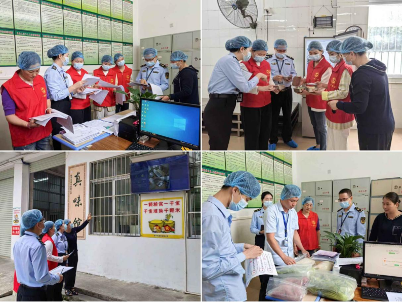 正在“六一”国际儿童节到临之际,5月27日,广西壮族自治区贵港桂平市“八桂食安”桂姐姐意愿办事队结合该市妇联,开展食物平安宣传勾当。当天上午,桂平市“八桂食安”桂姐姐意愿办事队、市妇联、家长代表一行对学校食堂开展突击查抄。正在学校食堂办公室,意愿者查看当天食谱,领会食材采购环境,并按照《广西中小学校园食物平安监视查抄指南》,对学校食物运营许可、食物平安办理人员配备、食材采购索票索证、食物原料节制、加工制做过程节制、留样办理、餐具清洗消毒、设备日常等逐项查抄,并通过查看“互联网+明厨亮灶”记实环境,对学校从食材采购、加工操做流程到成质量量进行全链条监视。此外,沉点监视查抄食堂绞肉机等设备利用和环境。